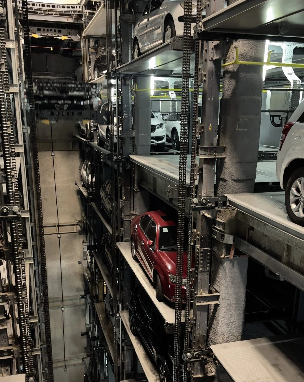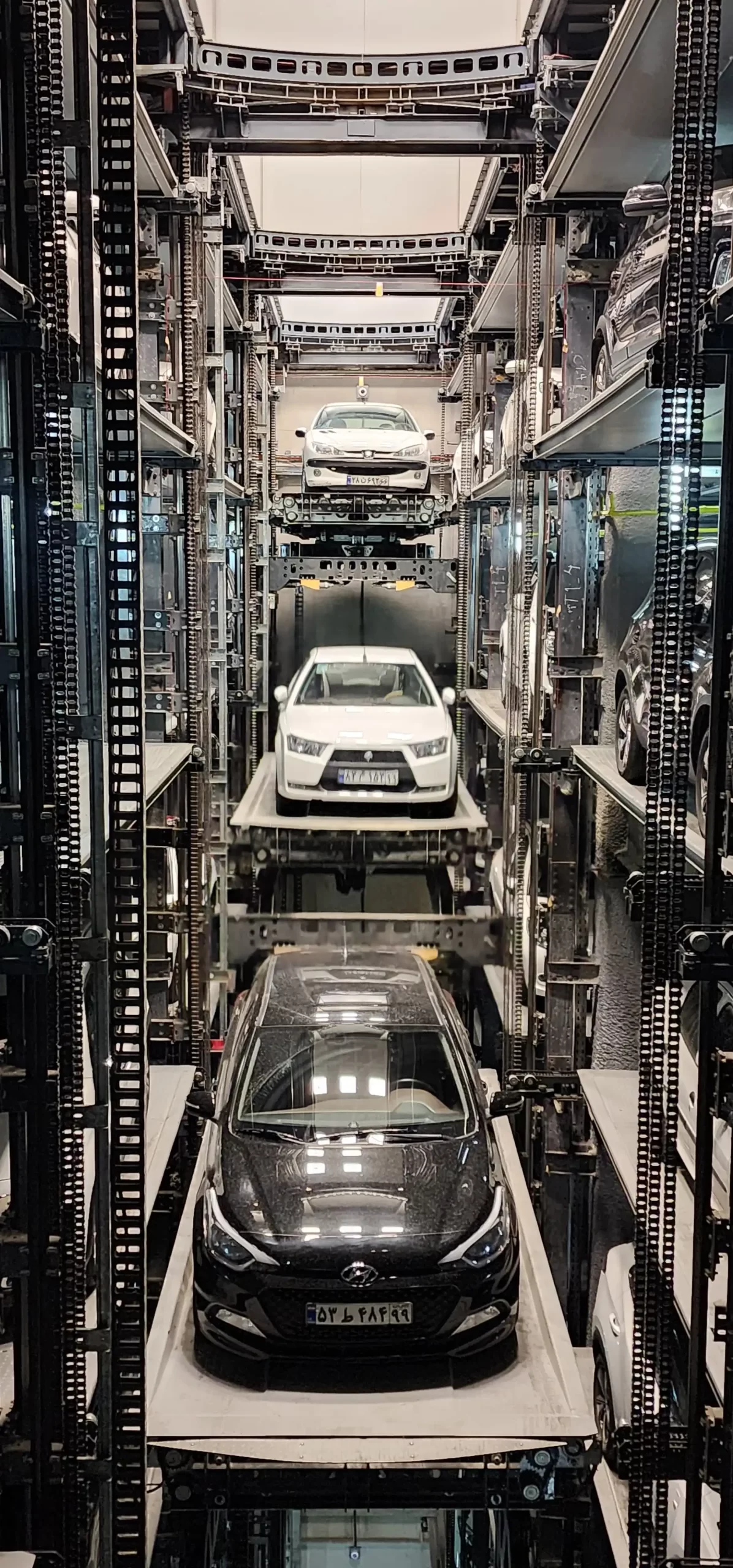 - مزایا: افزایش ظرفیت تا چند برابر، کاهش نیاز به زمین، بالا رفتن ایمنی خودروها، نظم و سرعت در پارک/بیرون آوردن خودرو.